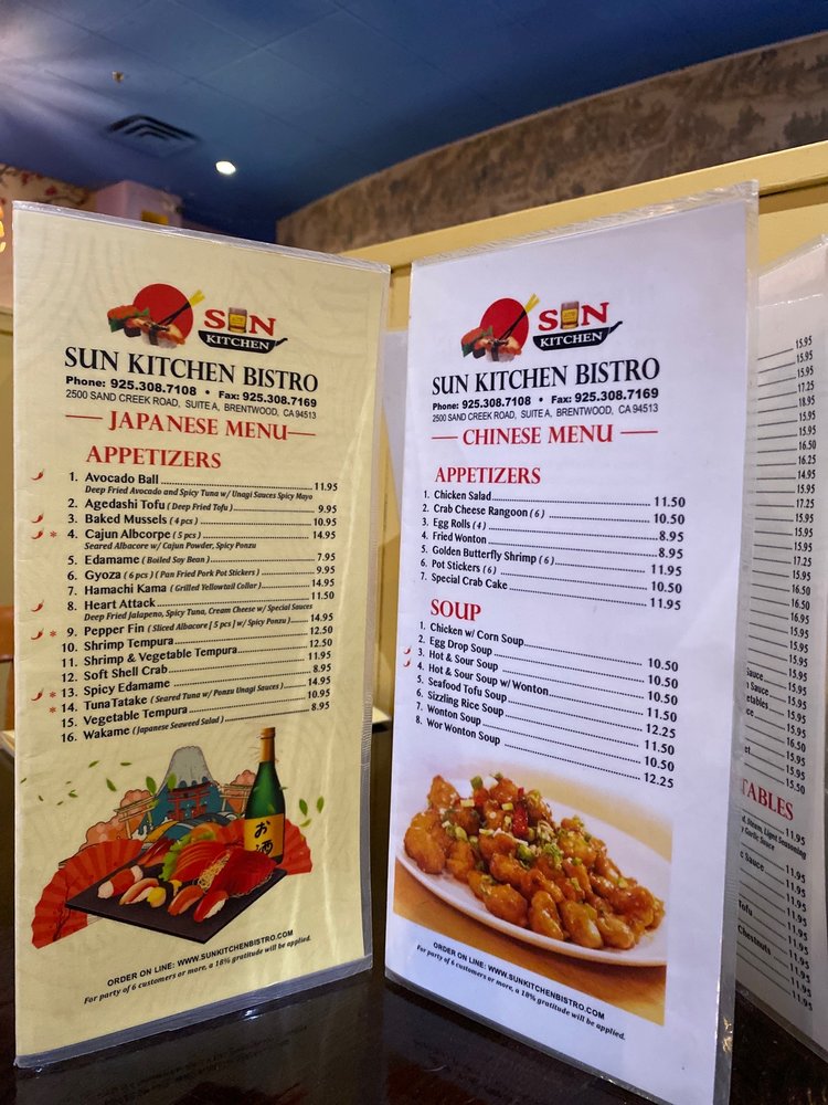 Welcome to Sun Kitchen Asian Bistro, where the vibrant flavors of Chinese and Japanese cuisines come together in perfect harmony. Nestled in Brentwood, CA, this bistro offers a diverse menu that caters to all palates, featuring exquisite sashimi appetizers and flavorful beef dishes, alongside a variety of sushi combos that will delight seafood lovers.