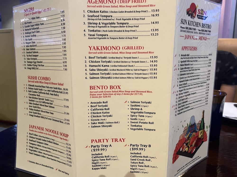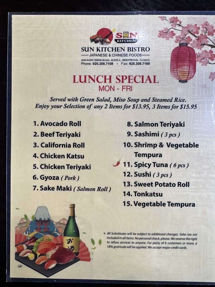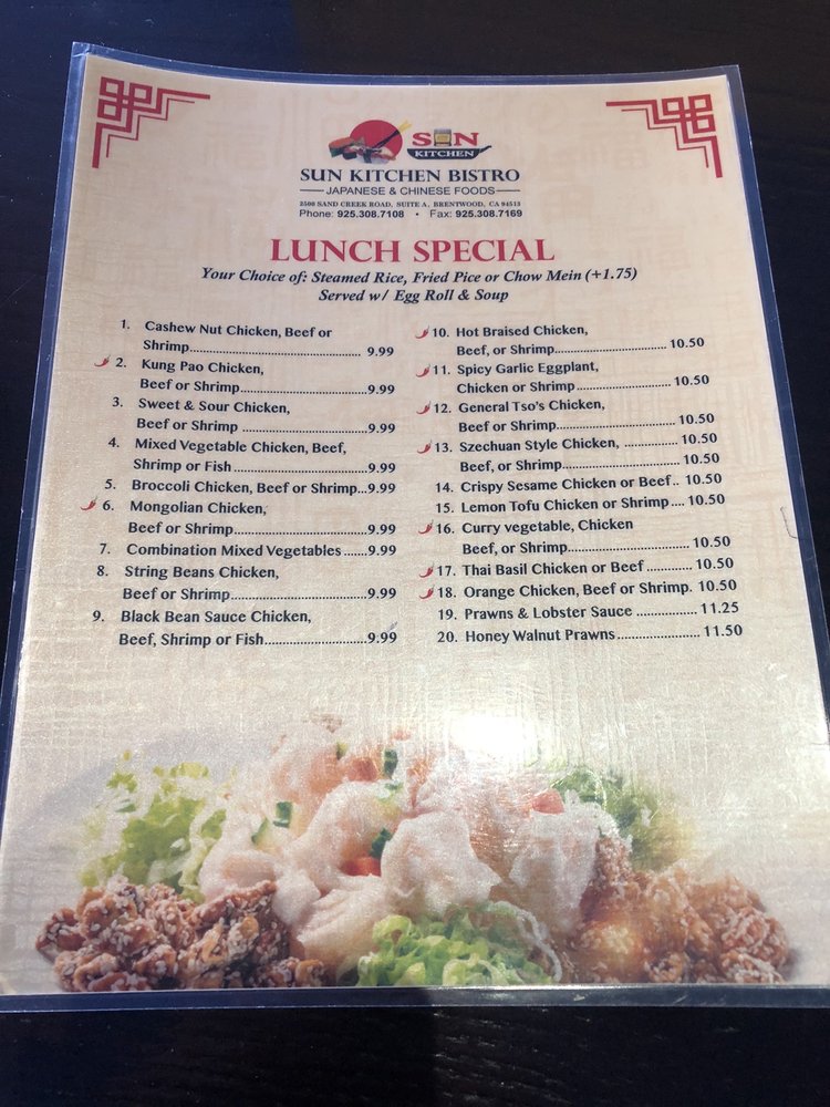 Sun Kitchen Asian Bistro Menu